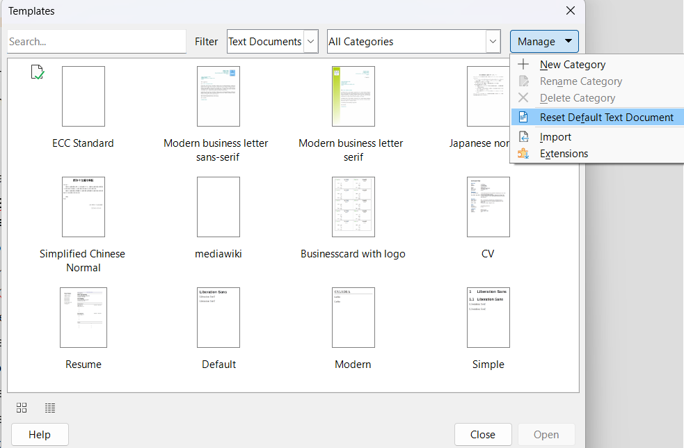 Man skal lede lidt online for at finde noget information om hvordan man kan distribuere en ensartet opsætning i LibreOffice - men til sidst fandt jeg ud af, at det stort set foregår i en enkelt opsætningsfil for hele pakken. Der kunne MS godt nok lære noget. Der er lidt med normal.dot som den ikke hedder i LibreOffice - her kan man vælge en hvilken som helst skabelon fil som standard - det nu smart nok - man skal så bare huske at lægge den valgte skabelon ned i skabelon mappen.